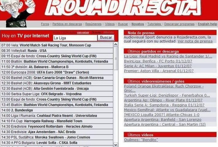 Roja Directa retransmite a través de su portal casi todos los partidos de la Liga española, entre otras ligas mundiales como la Eredivise (Holanda), Premier League (Inglaterra) y Serie A (Italia) .
